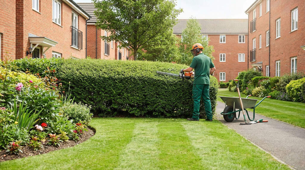 Rasen mähen, Hecken schneiden, Unkraut weg. Wir halten Ihre Grünflächen das ganze Jahr über gepflegt und einladend.